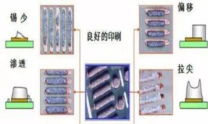 (1)钢网的开孔堵塞或部分锡膏附着在钢网底部;